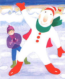 主人公が話しかけるとなんと不思議、そのゆきだるまに手と足が生え立ち上がった